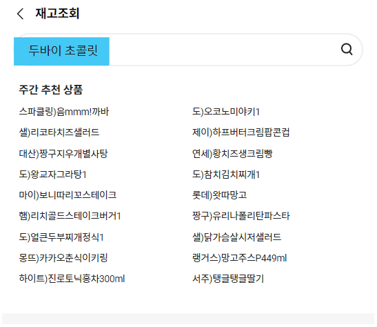 3. CU 재고조회 검색엔진에 두바이 초콜릿을 검색하면 끝입니다.