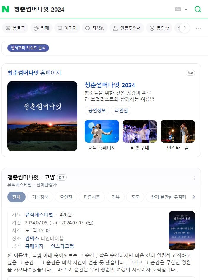 1. 인터넷에 들어가 검색엔진에 청춘썸머나잇을 검색해 줍니다.