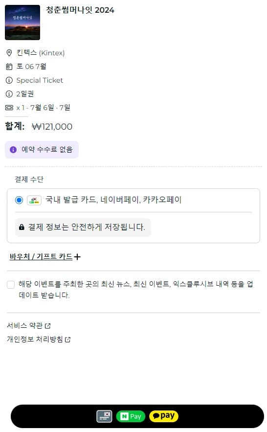 4. 티켓 구매하기를 눌러 구매창으로 넘어가 결제하면 끝입니다.